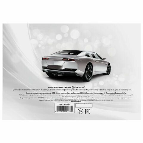 Альбом для рисования Brauberg А4, 40 листов, обложка картон, 200х283 мм, "Автостиль" (2 вида), 102852
