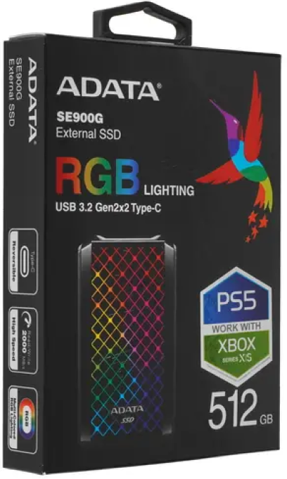Внешний SSD накопитель ADATA SE900G RGB 512GB, черный (ASE900G-512GU32G2-CBK)