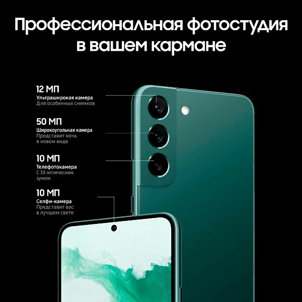 Смартфон Samsung Galaxy S22 5G, 8.128 Гб, Dual (nano SIM + eSIM), Dark green, темно-зеленый