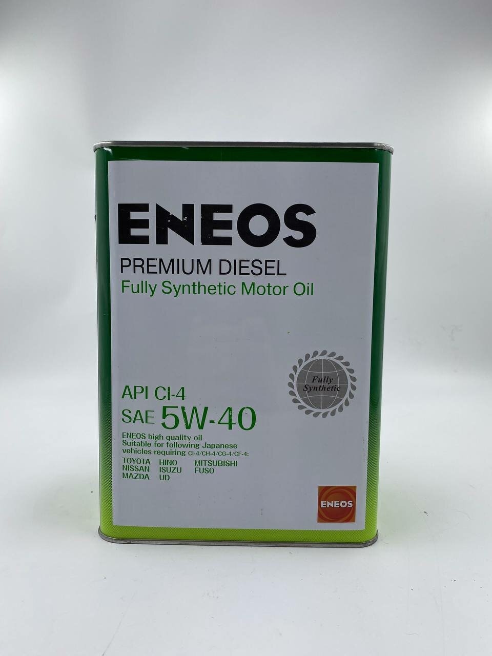 Масло моторное Eneos Premium Diesel 5w40 синтетическое, API CI-4, ACEA E4/E7, JASO DH-1, для дизельного двигателя, 4л, арт. 8809478943077