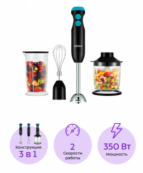 Блендер погружной Kitfort КТ-3041-1 350Вт черный/фиолетовый КТ-3041-1 .
