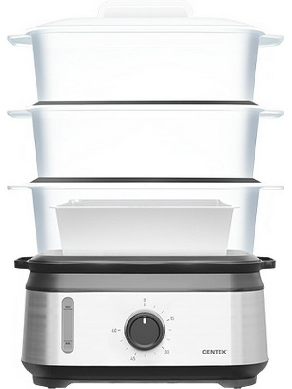 Пароварка CENTEK CT-1458, 9л 1050Вт, стальной корпус, таймер 60 мин, 3 контейнера, чаша для риса