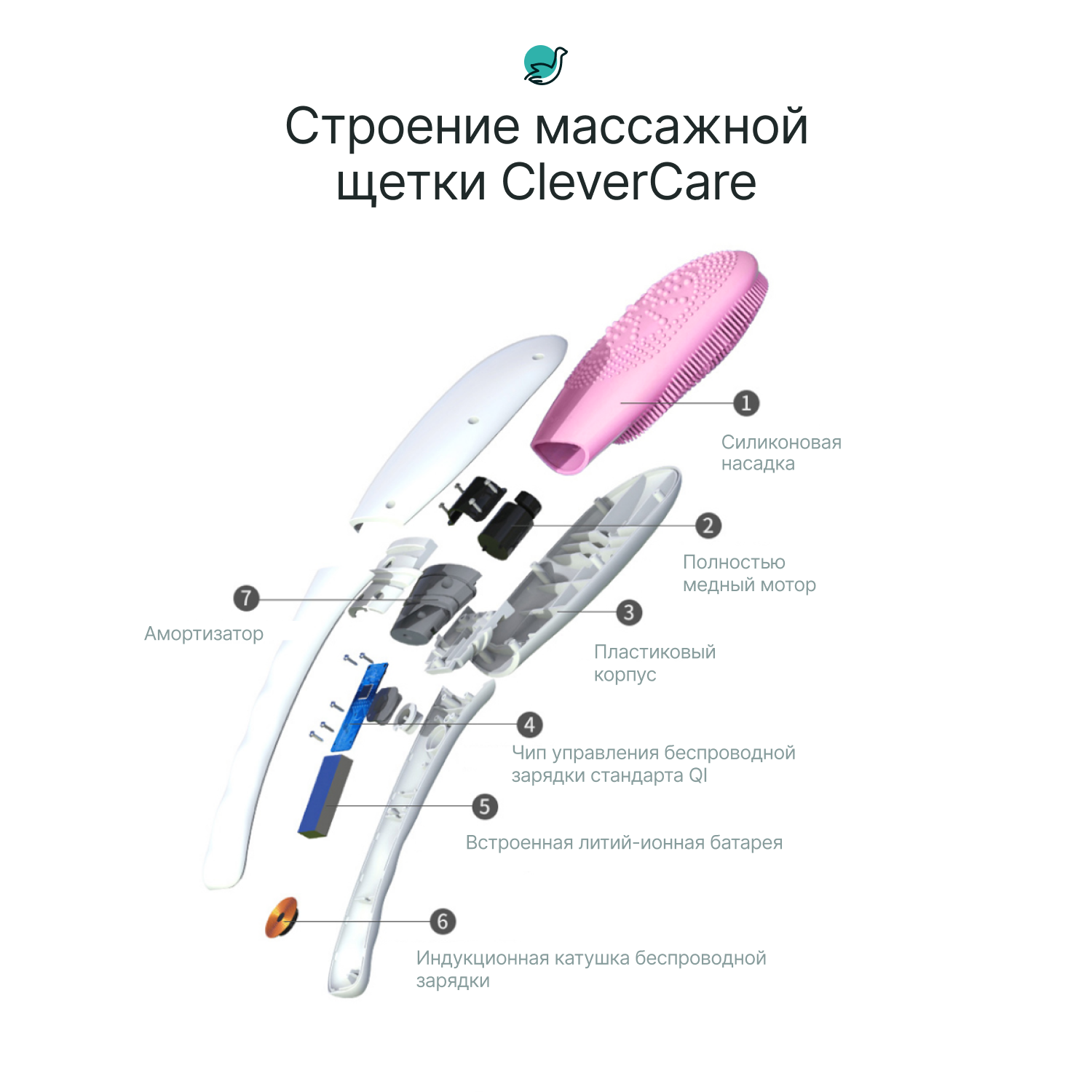Щетка массажная для тела CleverCare / щетка косметическая / электрическая массажная щетка