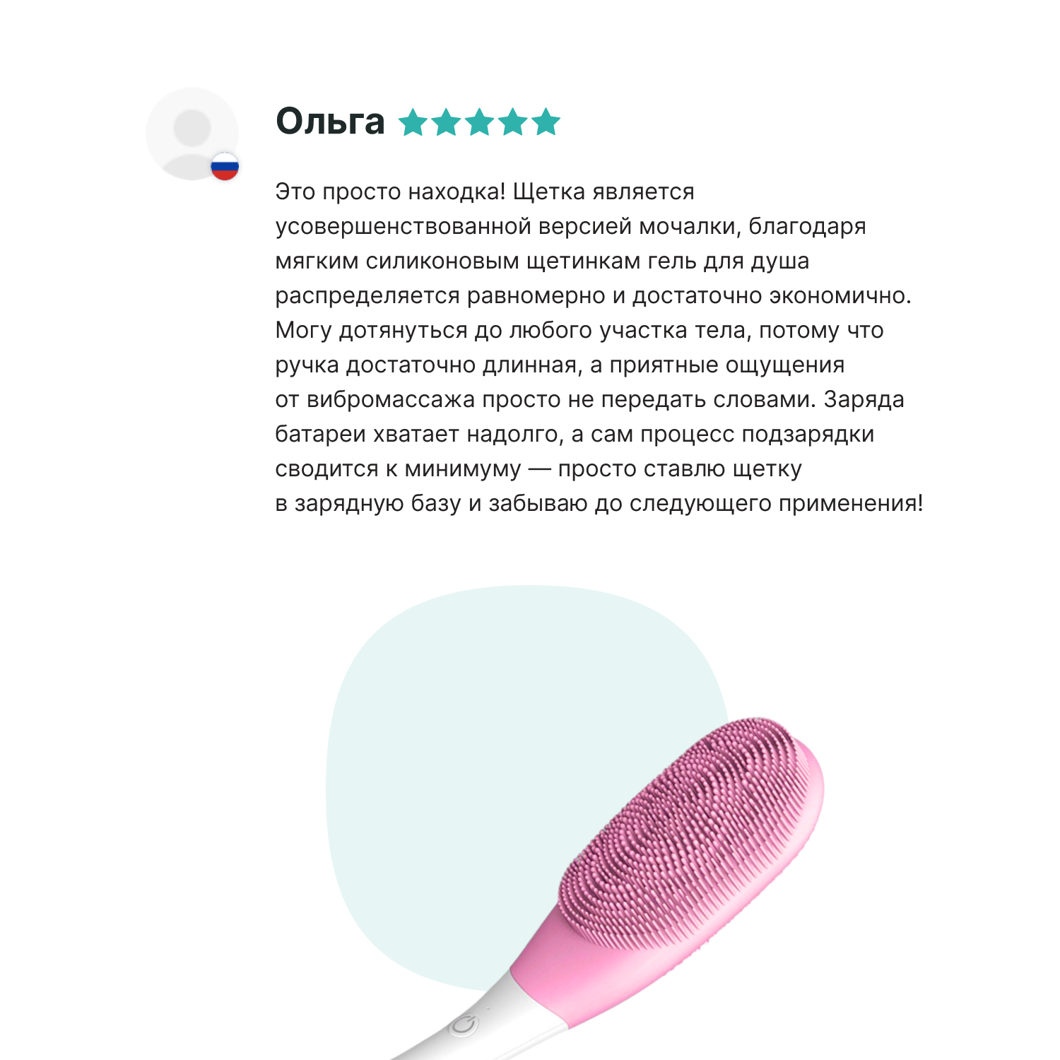 | Отзыв: | Щётка отлично справляется со своими задачами! Массаж получается качественным. Я быстро смогла почувствовать эффект. Управление простое и удобное. |