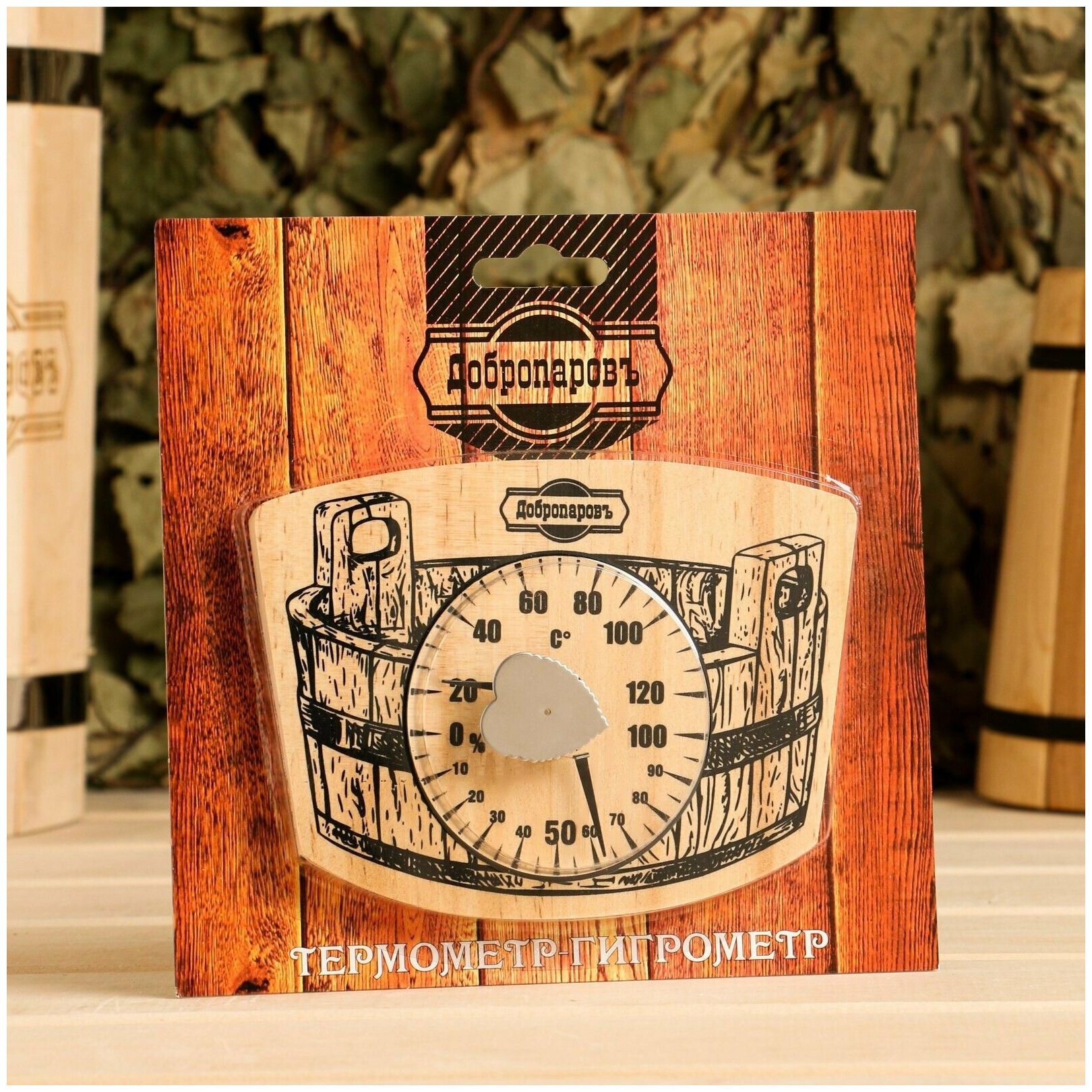 Термометр-гигромаетр "Шайка", дерево Добропаровъ 6996130 .
