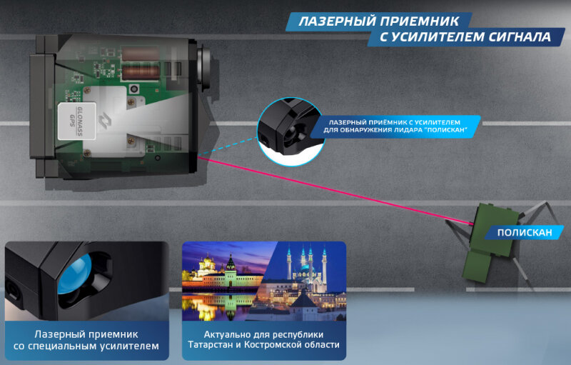| Обнаружение радаров | "K-диапазон", "Lazer", "Mesta", "X-диапазон", "Автоураган", "Арена", "Беркут", "Бинар", "Визир", "Вокорд", "Интегра-КДД", "Искра", "Кречет", "Крис", "ЛИСД", "Одиссей", "Оскон", "Поток-С", "Рапира", "Скат", "Сокол", «Robot», «Автодория», «Кордон», «Стрелка» |
