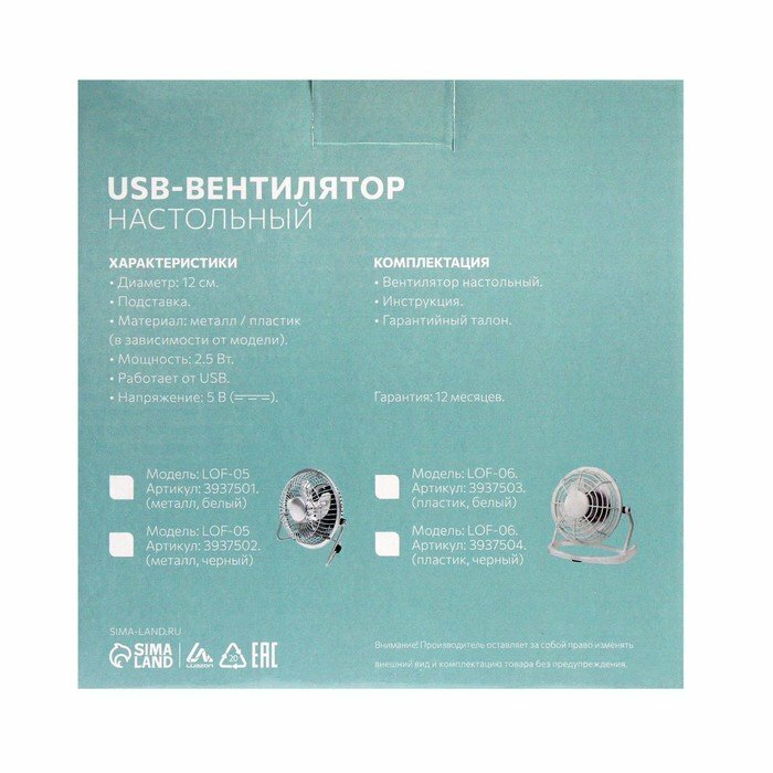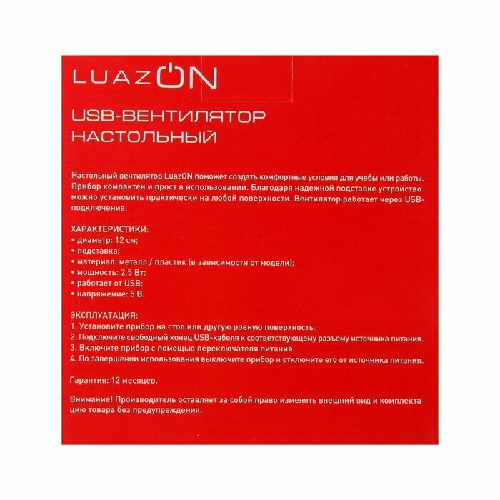 Luazon Home Вентилятор Luazon LOF-05, настольный, 2.5 Вт, 12 см, металл, черный интересное: