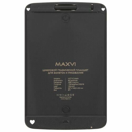 LCD графический планшет для заметок Maxvi MGT-01, черный, 8.5", монохромный