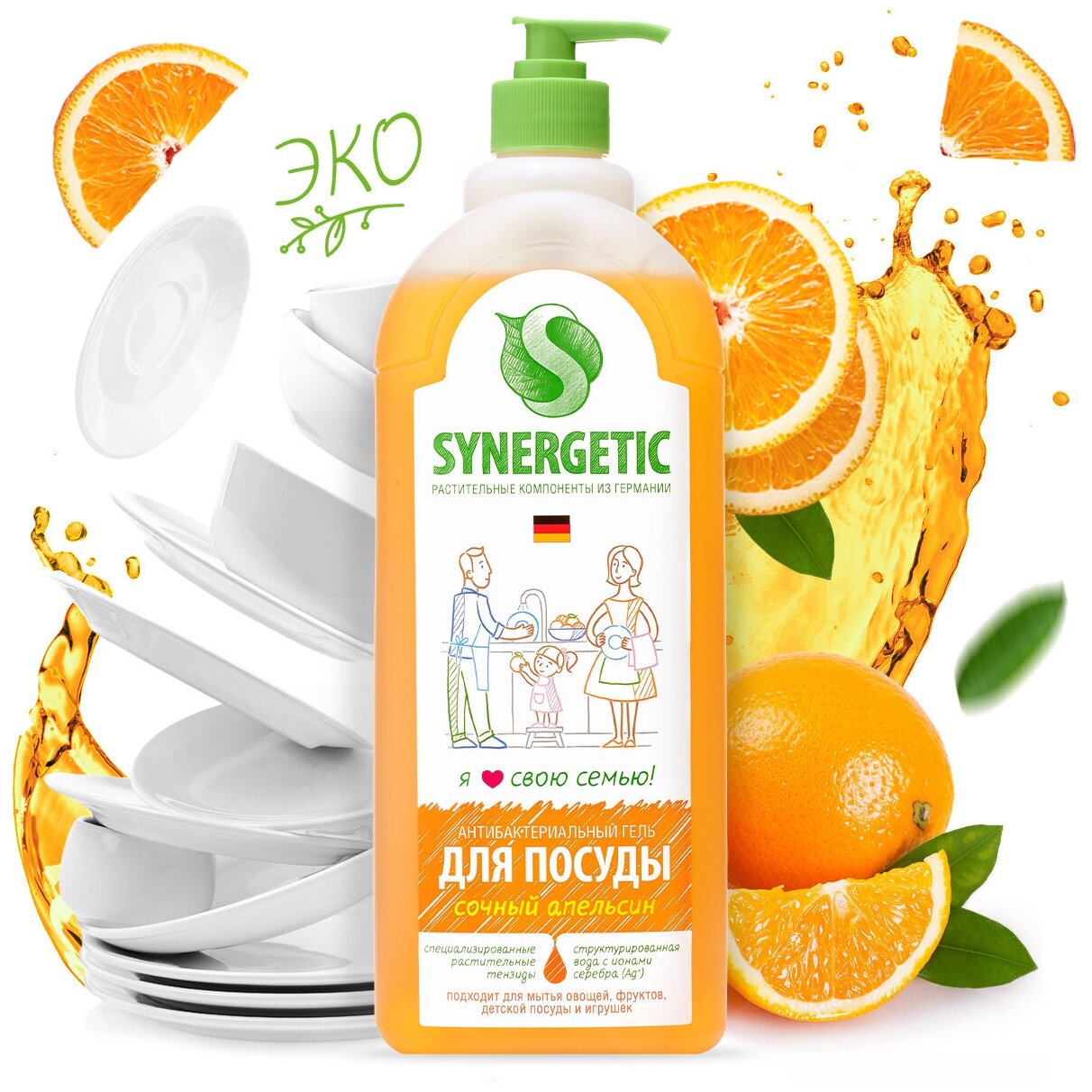 Гель для мытья посуды «Сочный апельсин», 500 мл, Synergetic