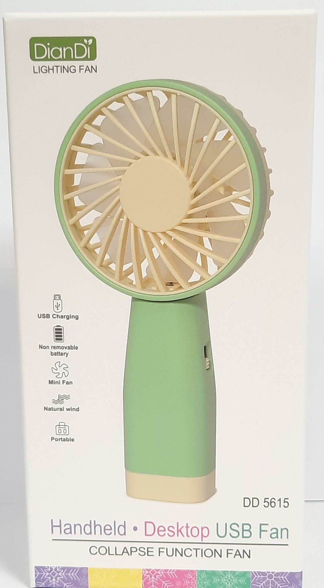 Вентилятор ручной аккумуляторный с подсветкой DD5616, зелёный с жёлтым. интересное: