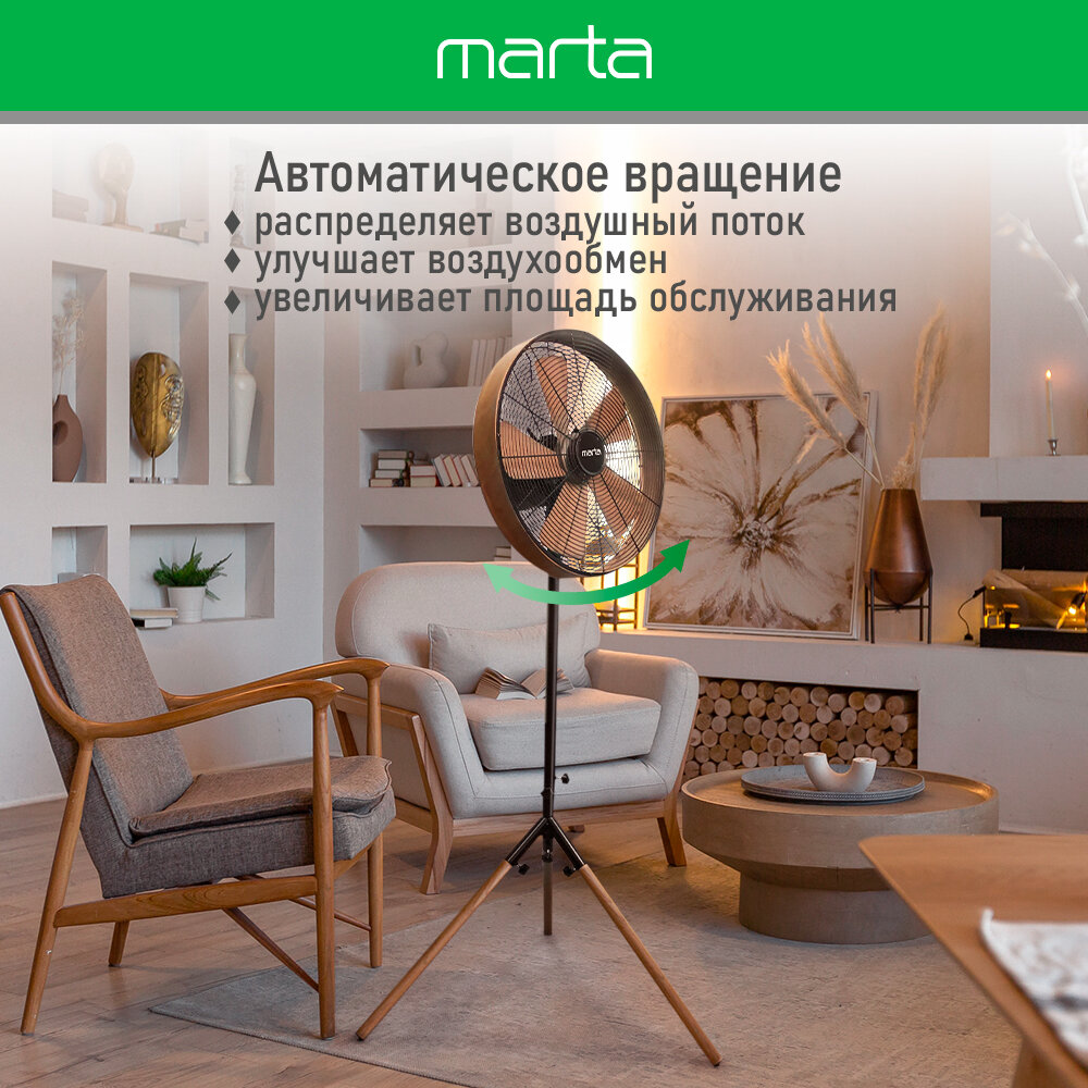 Напольный вентилятор MARTA MT-FN2555 черный/дерево интересное: