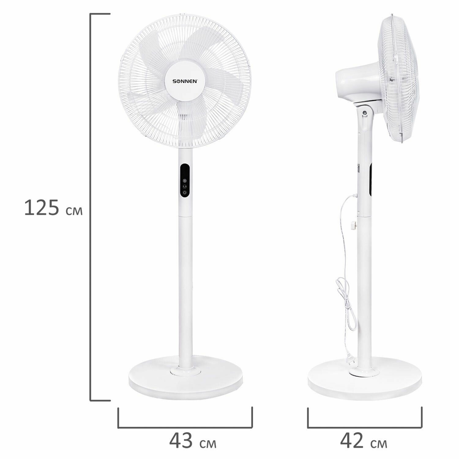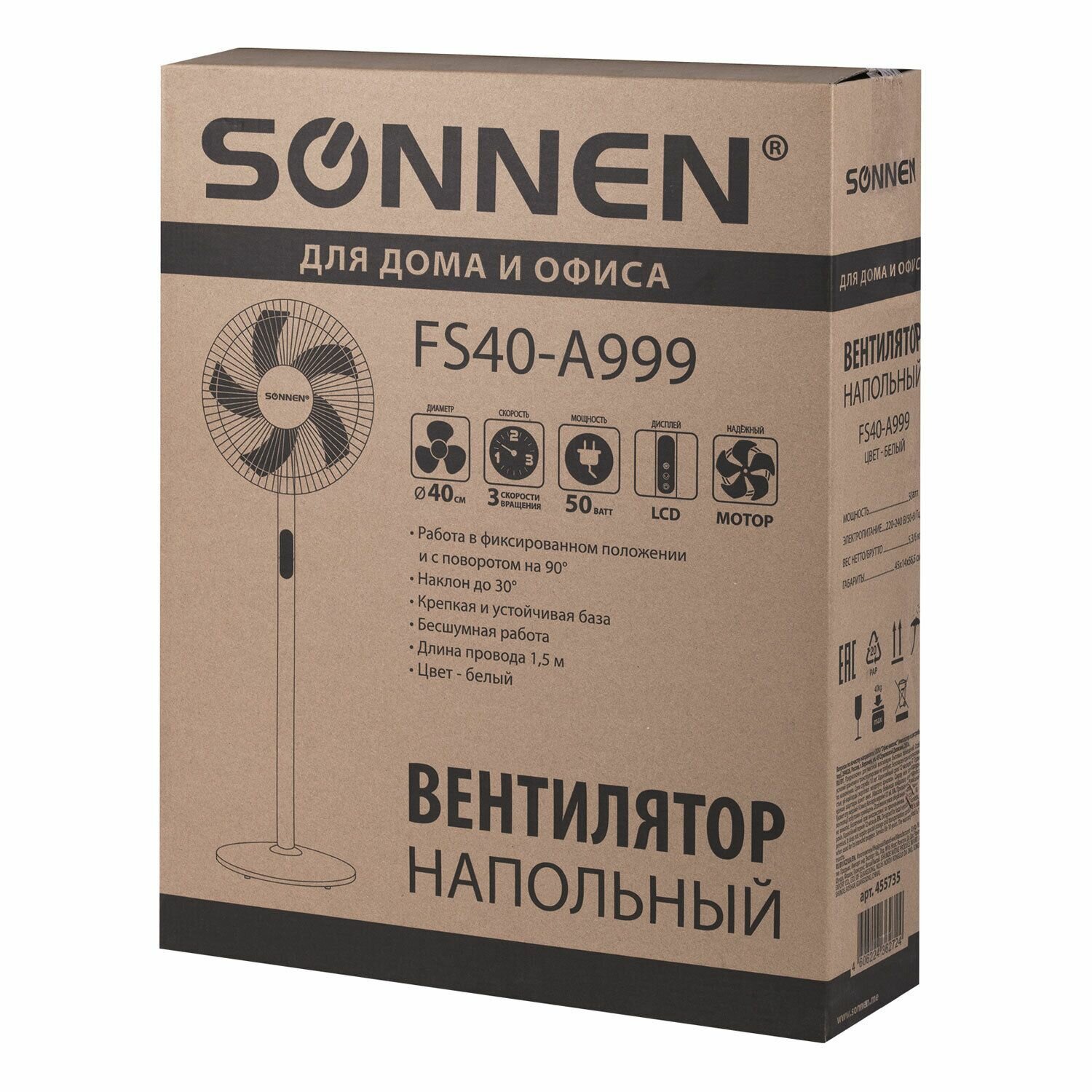 Купить Вентилятор напольный LCD дисплей, пульт ДУ SONNEN FS40-A999, 50 Вт, 3 режима, белый, 455735
