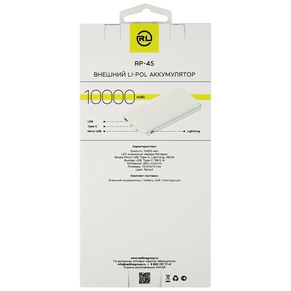 Внешний аккумулятор RedLine RP-45 (10000mAh) белый