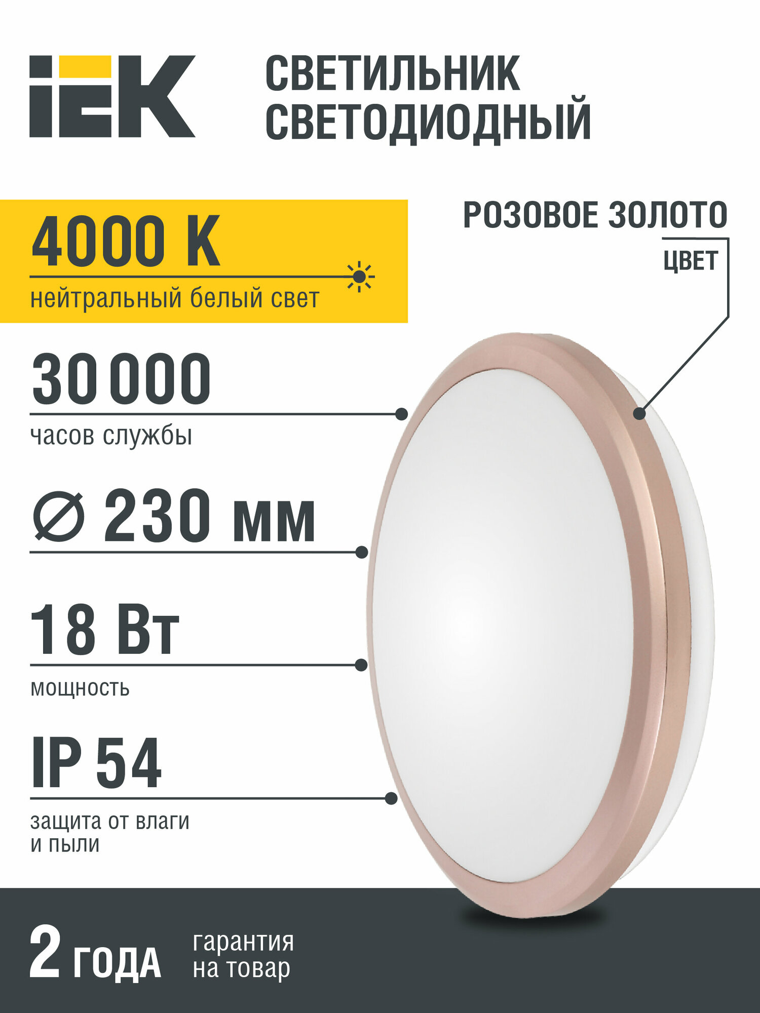 IEK Светильник LED ДПБ 3203 18Вт IP54 4000K круг роз. золото