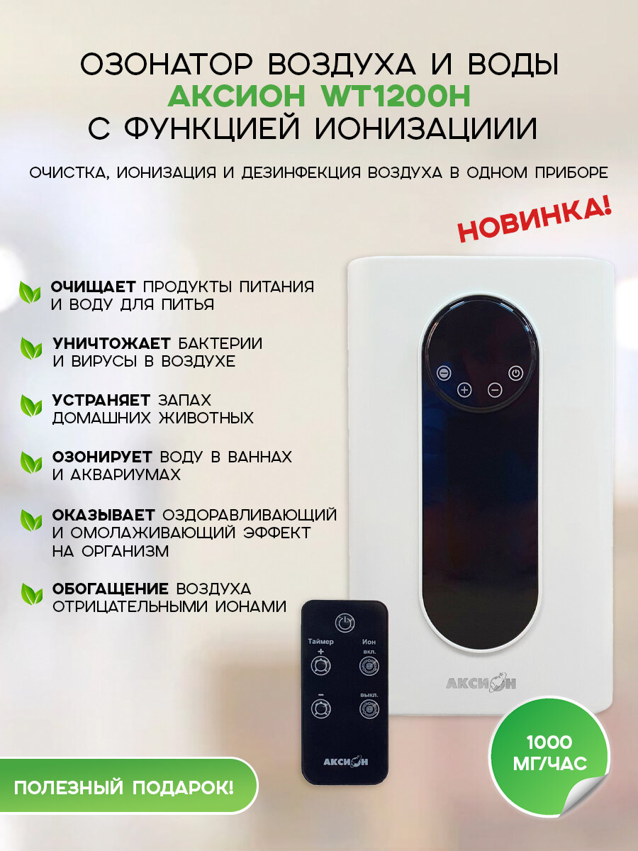 Озонатор - ионизатор WT1200-H Аксион 2 в 1 очиститель воздуха, воды и продуктов питания, 1000 мг/час. интересное: