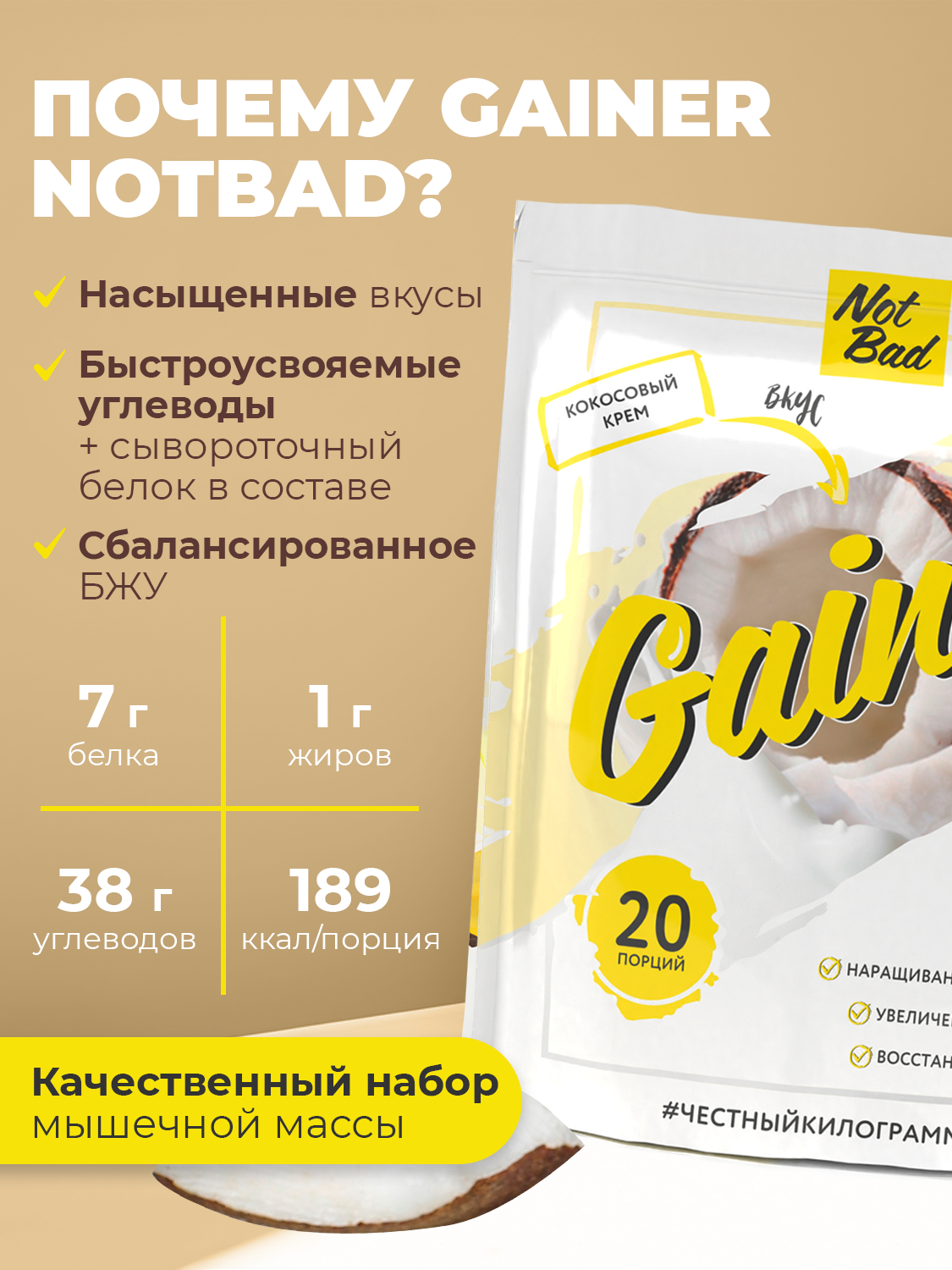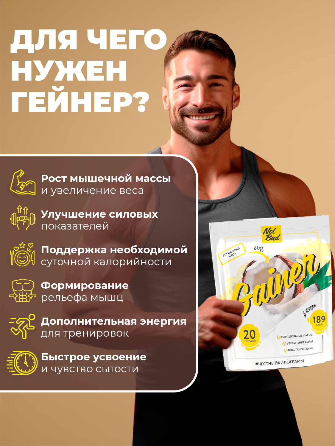Гейнер для набора мышечной массы NOTBAD Gainer, Кокосовый крем, 1000 г