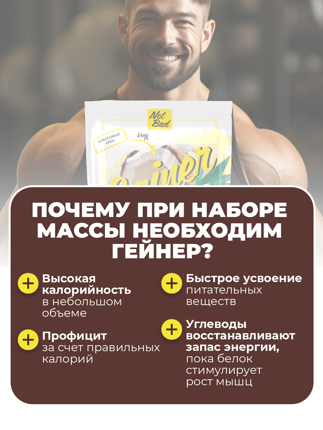 Купить Гейнер NotBad с быстрыми углеводами, 1000 г, кокосовый крем