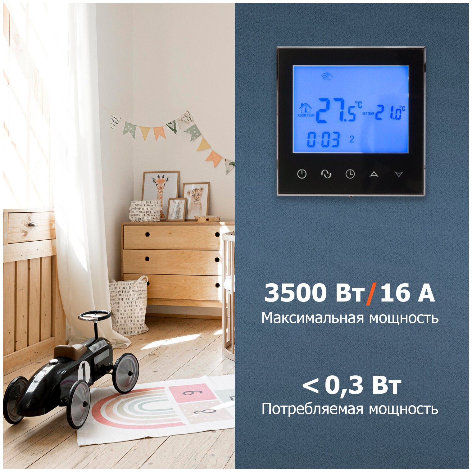 Терморегулятор сенсорный с датчиком температуры для инфракрасного и электрического обогревателя, котла, кондиционера, настенный, накладной термостат электрический, режим обогрева воздуха