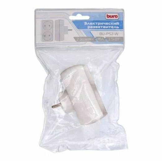 Купить Сетевой разветвитель Buro BU-PS2-W (2 розетки) белый (пакет ПЭ)