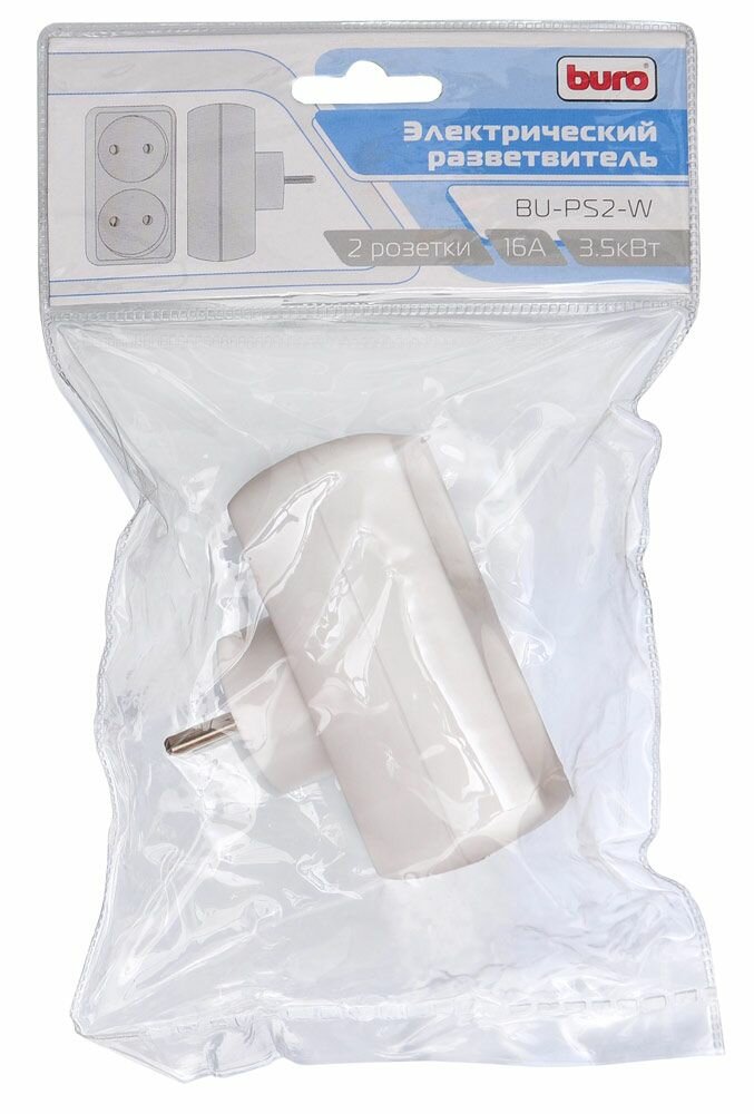 Разветвитель сетевой Buro BU-PS2-W 2 розетки, белый (пакет ПЭ)