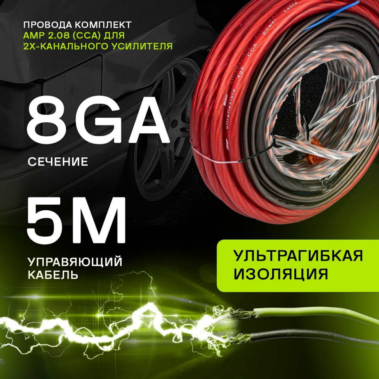 Провода комплект AMP 2.08 (CCA) для 2х канального усилителя