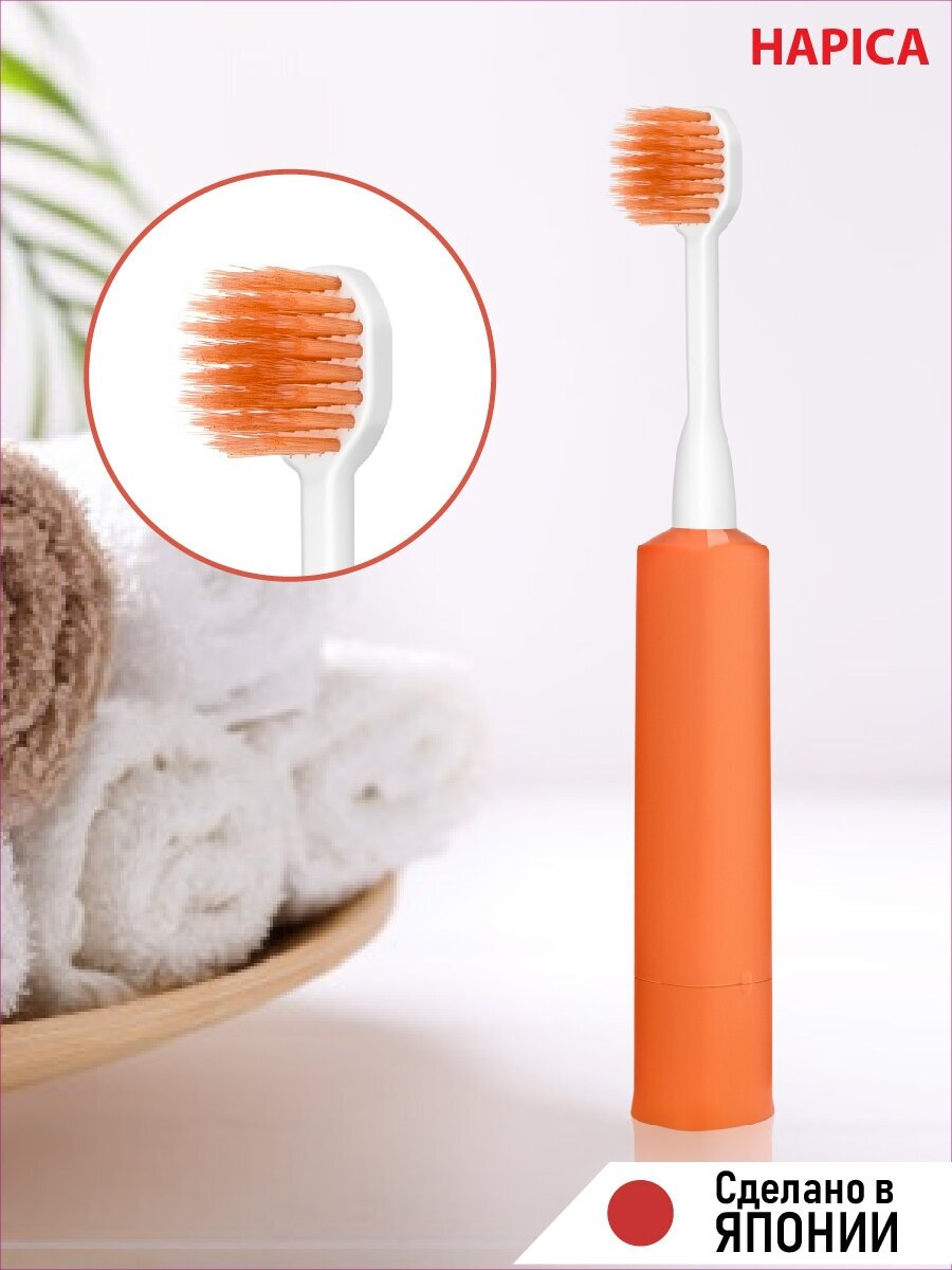 Щетка зубная звуковая электрическая Hapica с щетинками разной длины Super Wide (оранжевая)