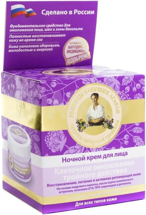Крем Рецепты бабушки Агафьи ночной клеточное омоложение тройного действия для лица, 100 мл интересное: