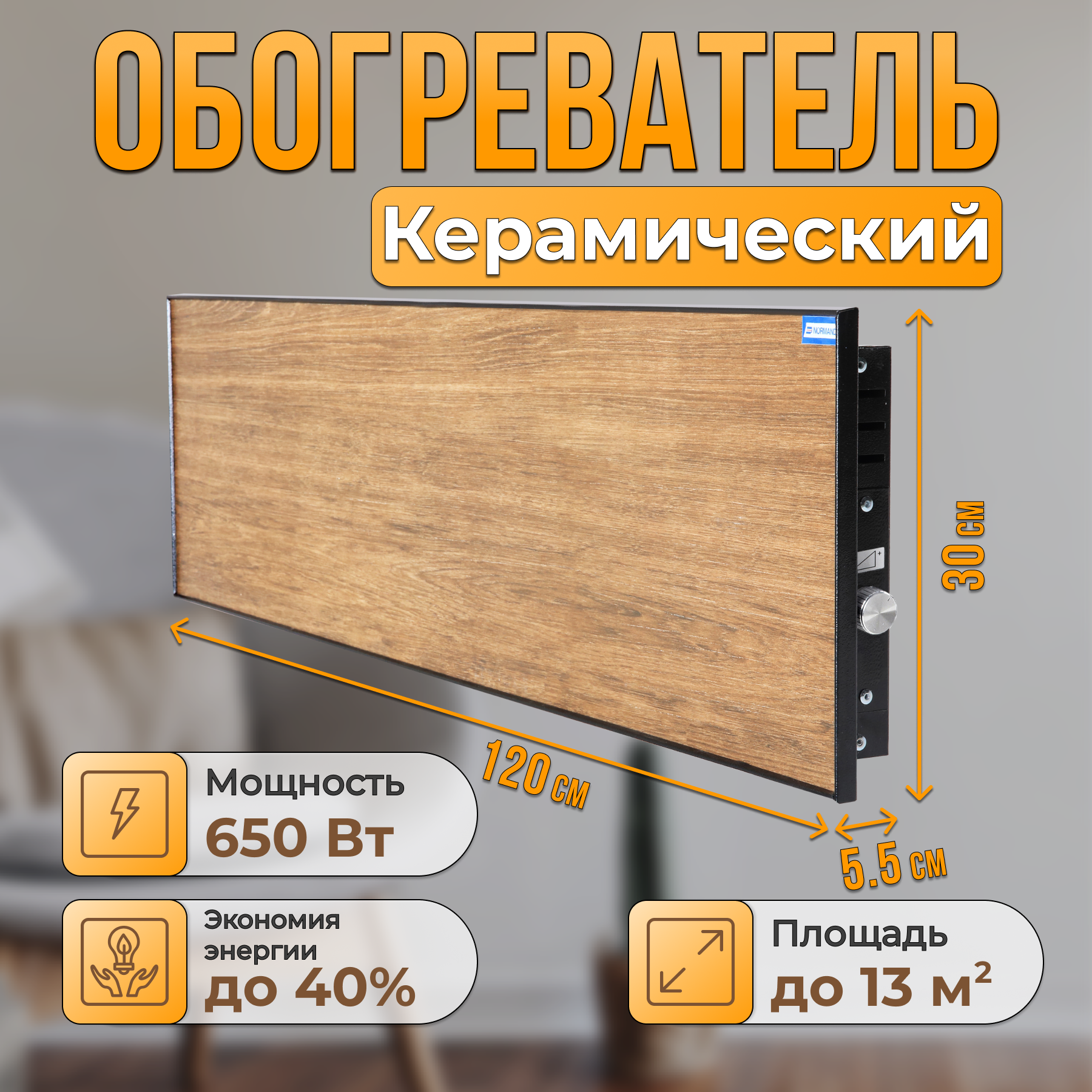 Керамический настенный энергосберегающий обогреватель Normand 650 М У (древ. медовый/черн) с механическим терморегулятором интересное: