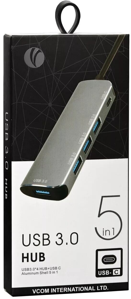 Vcom CU4383A Адаптер концентратор USB 3.1 Type-A --> 4 USB3.0 Alum Shell HUB+ PD,