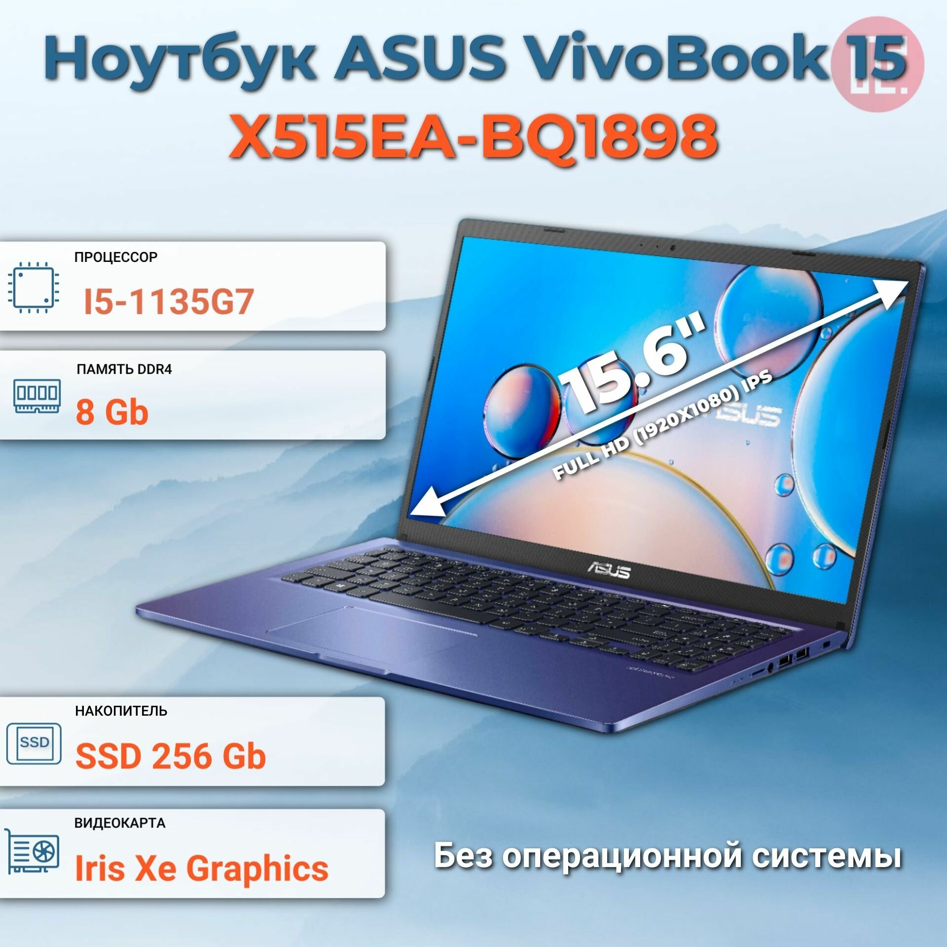 Купить Ноутбук ASUS X515EA-BQ1898 i5-1135G7/8GB/256GB SSD/15.6" FHD IPS/NoOS Blue (90NB0TY3-M00HZ0)