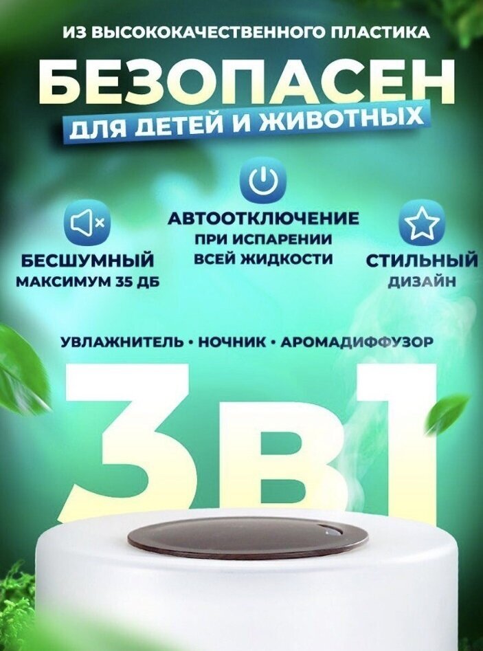 Ультразвуковой увлажнитель воздуха SWEET DREAM/Создаёт комфортный микроклимат и спокойный сон/Аромадиффузор / Ночник/7 цветов/Темное дерево интересное: