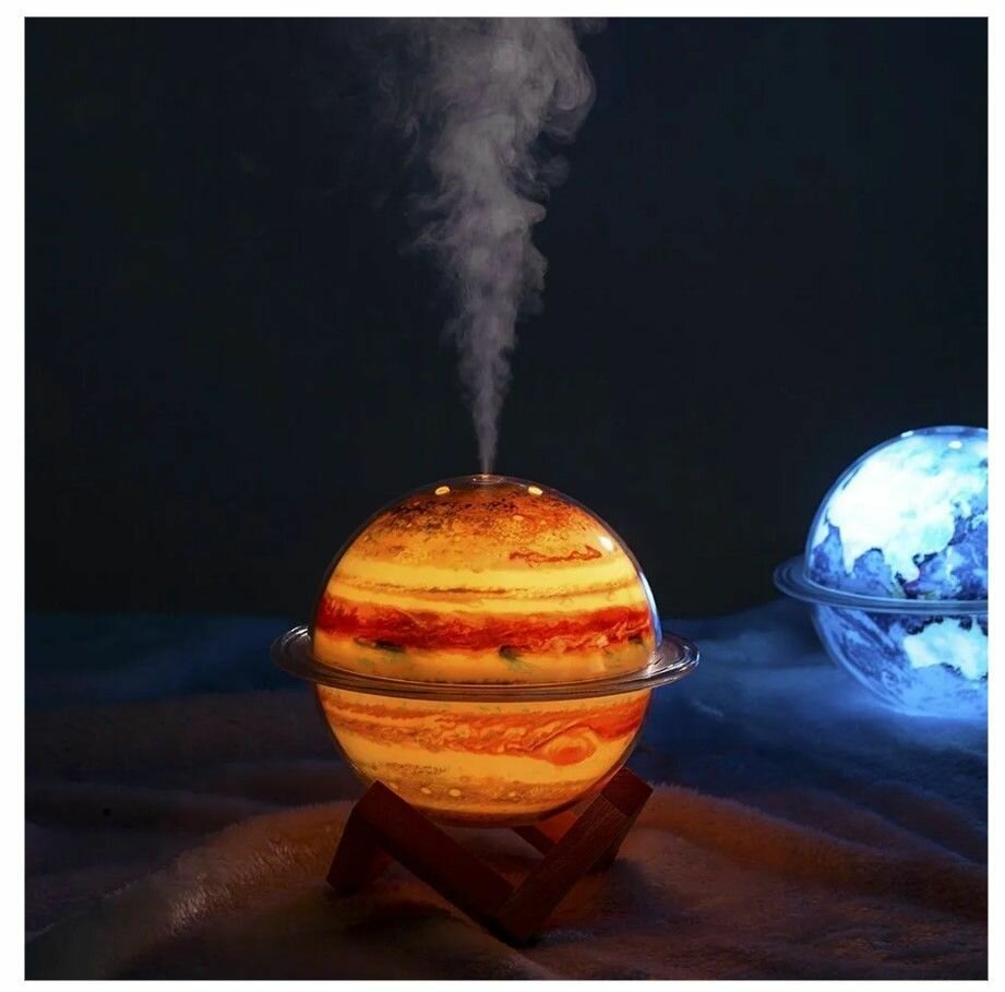 Купить Аромадиффузор увлажнитель воздуха Планета Юпитер 3 в 1 / 3D ночник на деревянной подставке