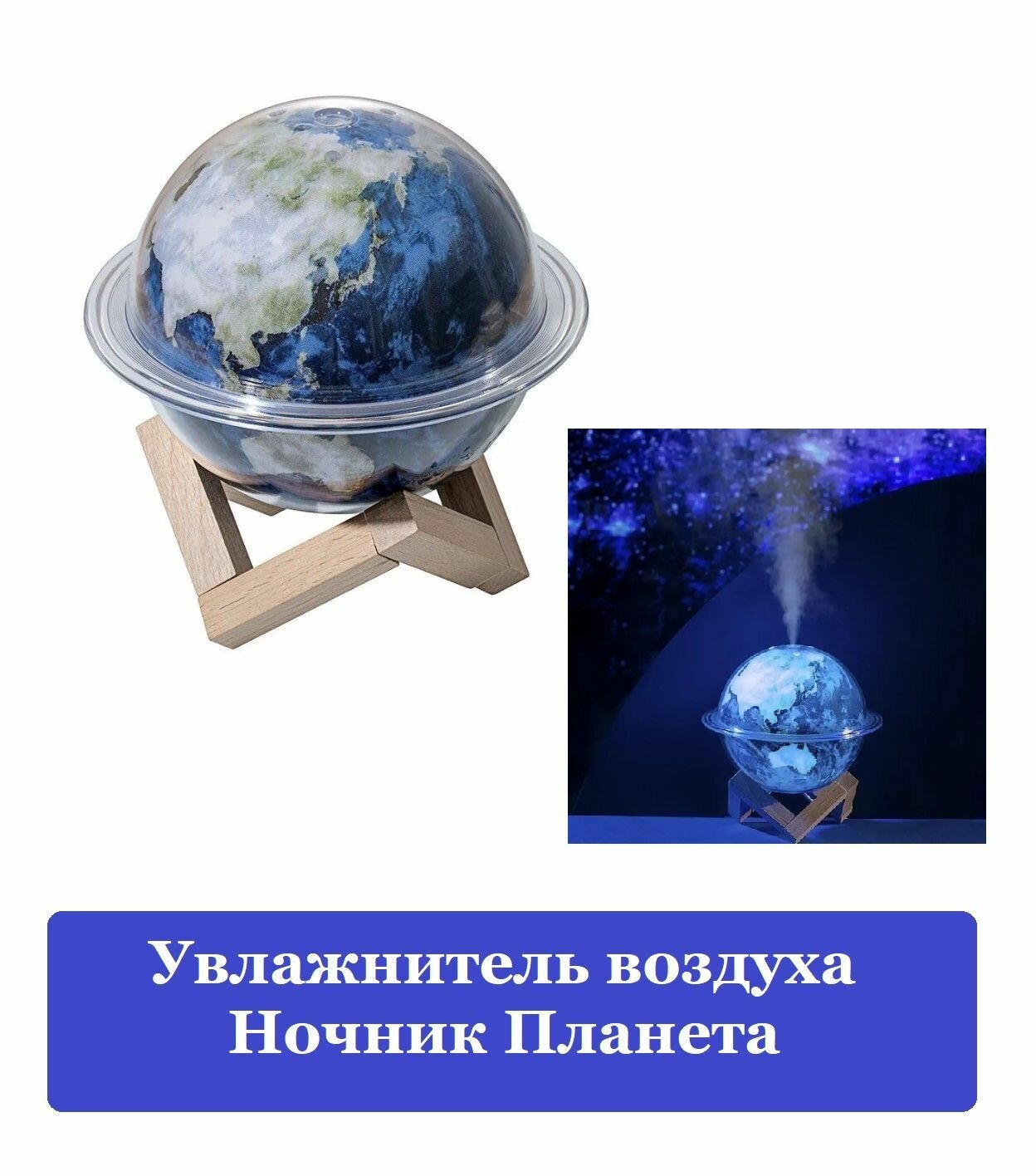 Купить Аромадиффузор увлажнитель воздуха Планета Земля 3 в 1 / 3D ночник на деревянной подставке