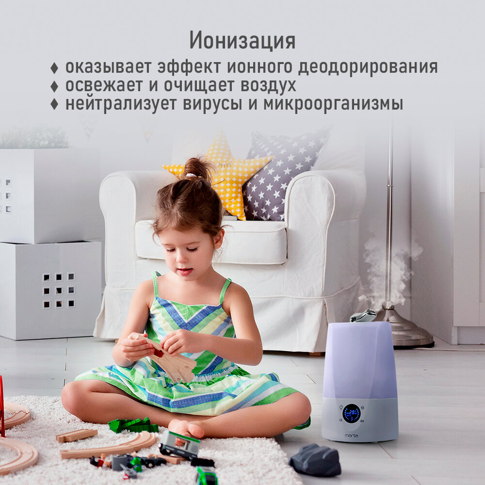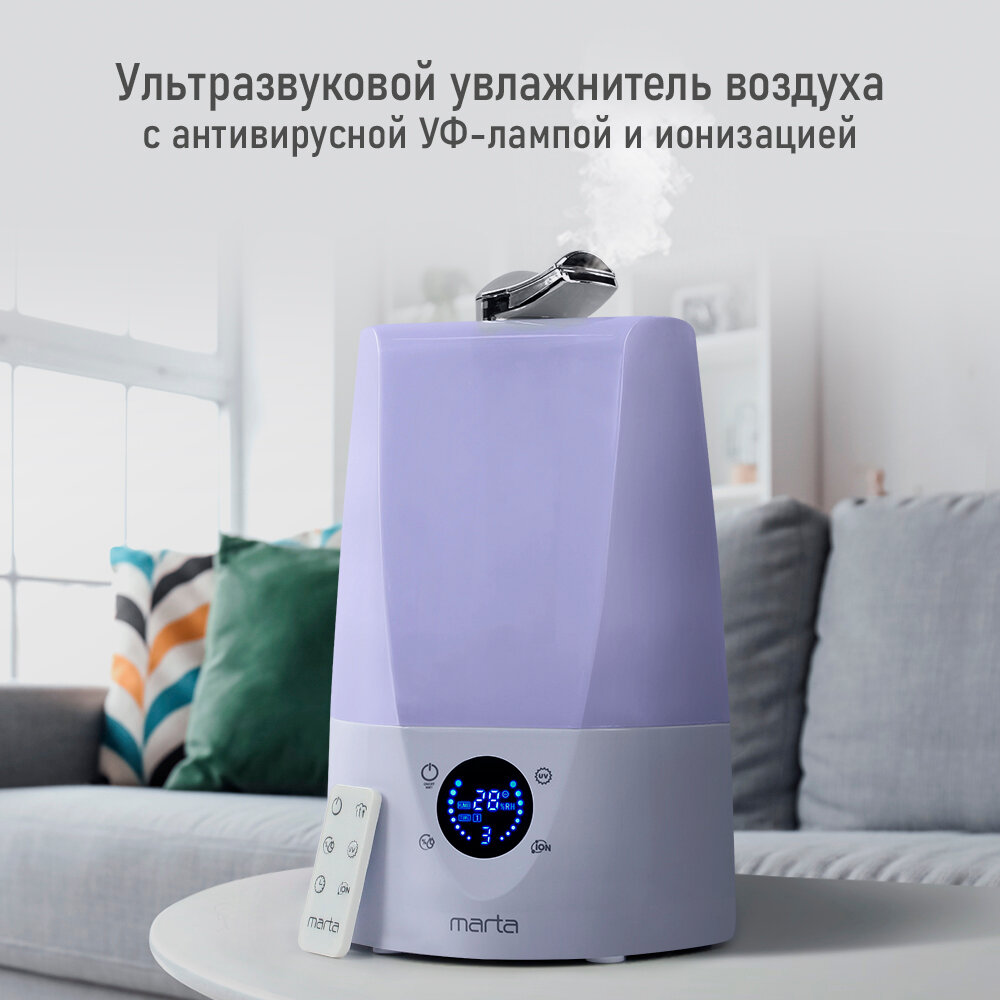 Увлажнитель воздуха с антивирусной УФ-лампой MARTA MT-HF4700C белый/серебро интересное: