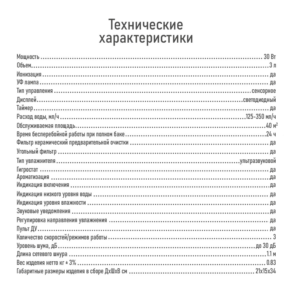 | Дополнительные функции | УФ лампа |
