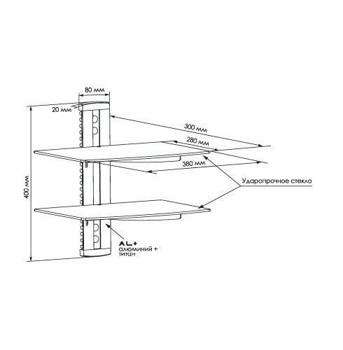 Кронштейн для телевизионных приставок Algenium DVD-20 настенная полка 2 полки до 8 кг 380*280мм - стекло чёрный интересное: