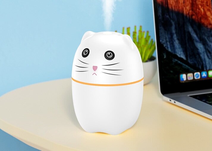 Увлажнитель воздуха настольный, компактный в детскую "Котик", белый интересное: