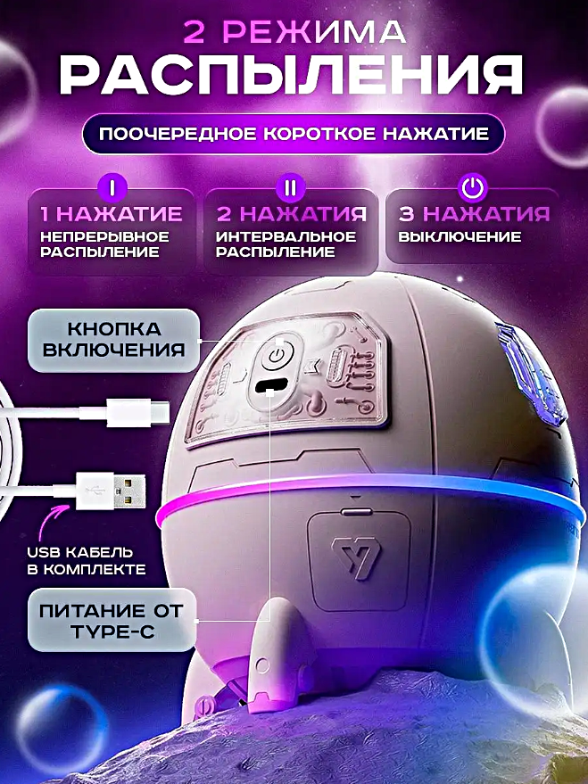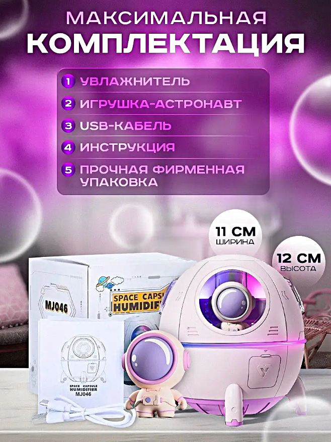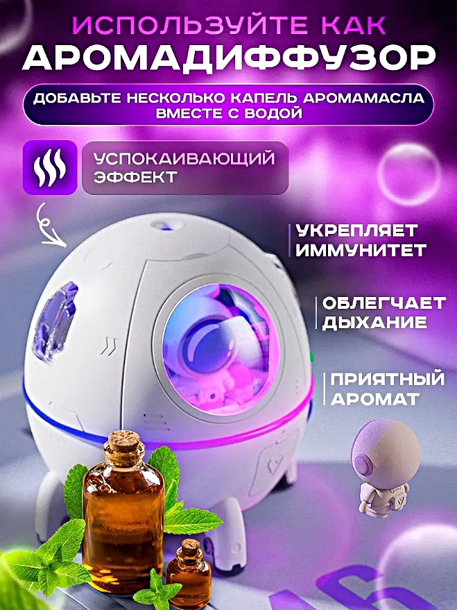 Увлажнитель воздуха ночник SPACE CAPSULE, Увлажнитель воздуха ночник Астронавт для дома с подсветкой, Розовый интересное: