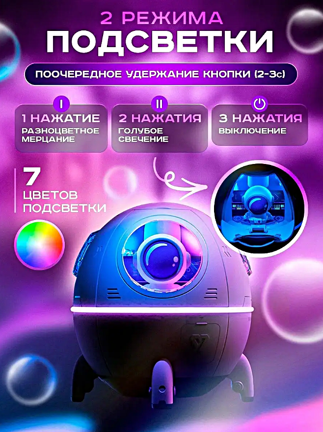 Увлажнитель воздуха ночник SPACE CAPSULE, Увлажнитель воздуха ночник Астронавт для дома с подсветкой, Белый