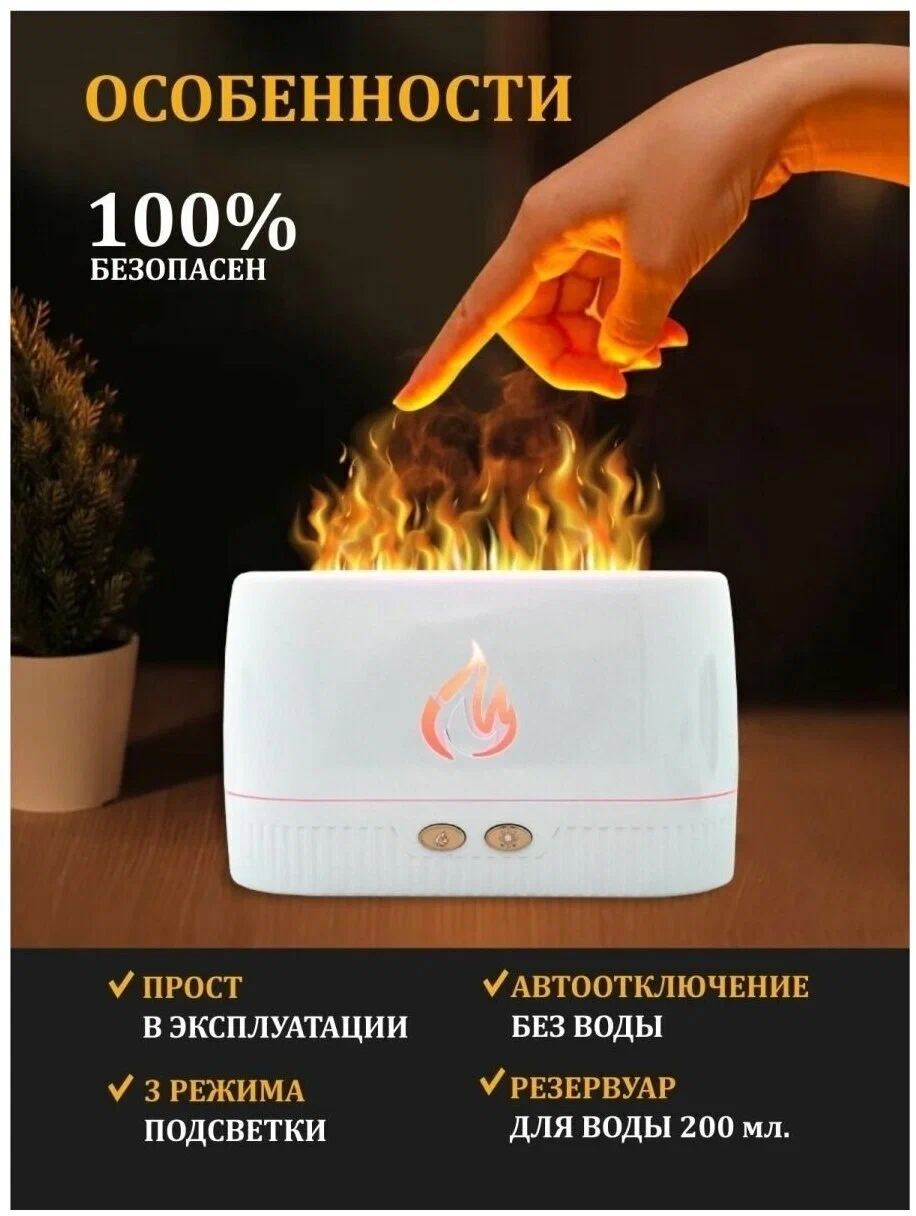 Аромадиффузор GadFamily электрический для эфирных масел с эффектом пламени, белый. интересное: