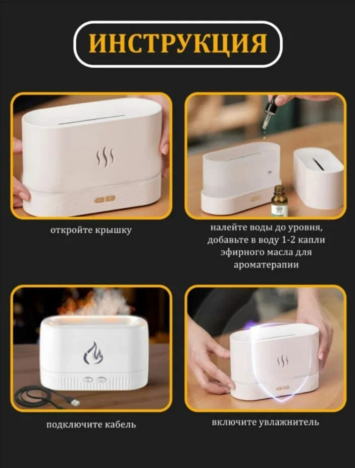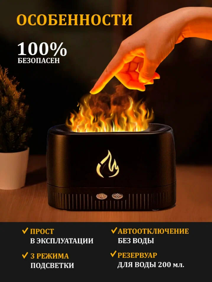 Аромадиффузор GadFamily электрический для эфирных масел с эффектом пламени, черный. интересное: