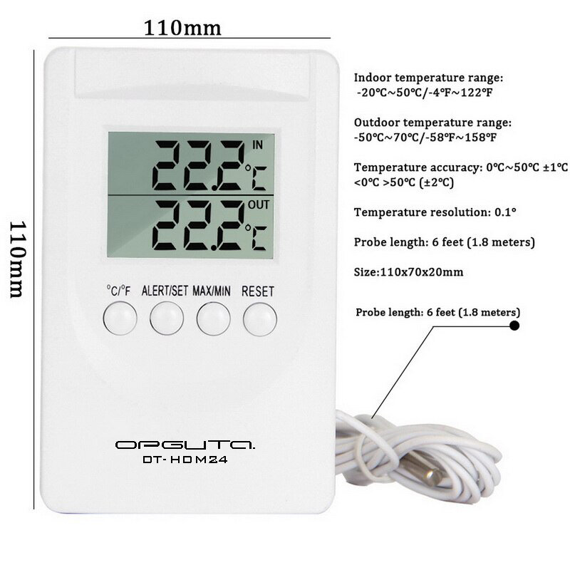 Термометр цифровой Орбита OT-HOM24 с выносным датчиком, для улицы, морозильника, ванны, сауны, почвы