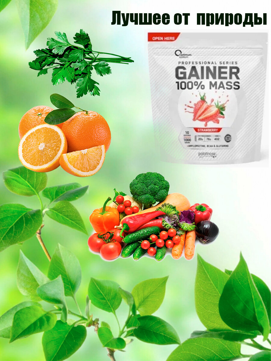 100% Mass Gainer 1000 гр (Optimum System) Клубника