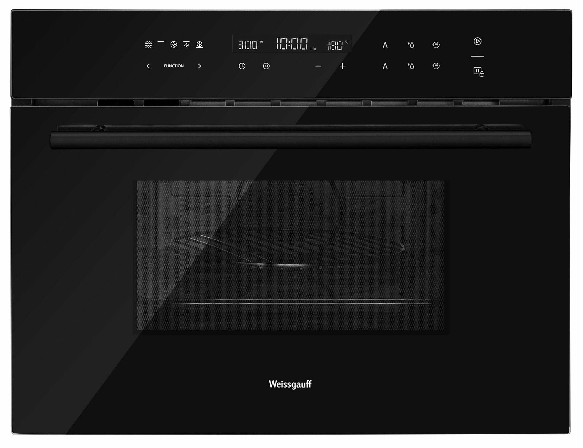 Встраиваемый компактный духовой шкаф с СВЧ Weissgauff OE 446 Black Edition