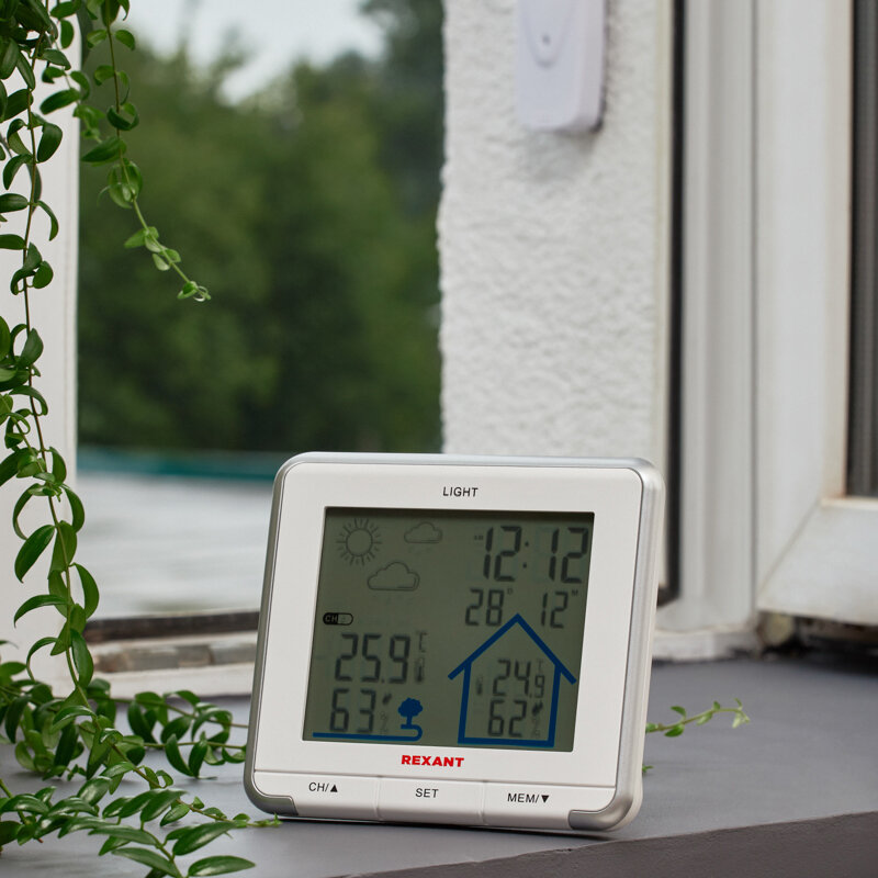 Метеостанция домашняя с беспроводным датчиком комнатно-уличная REXANT термометр с сенсорным ЖК-экраном датчик влажности