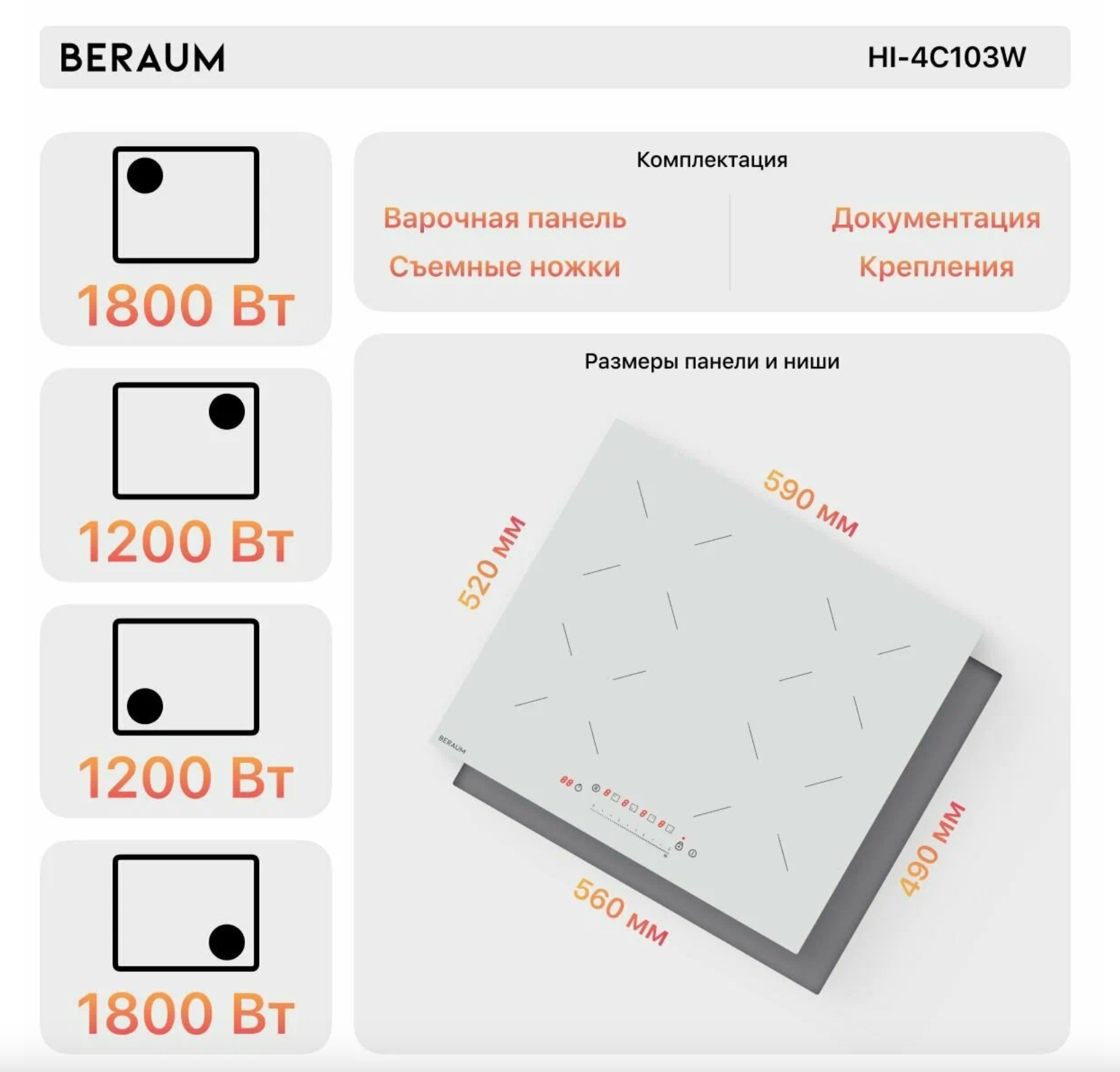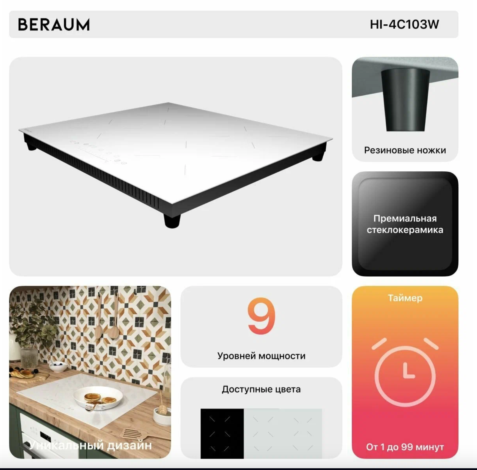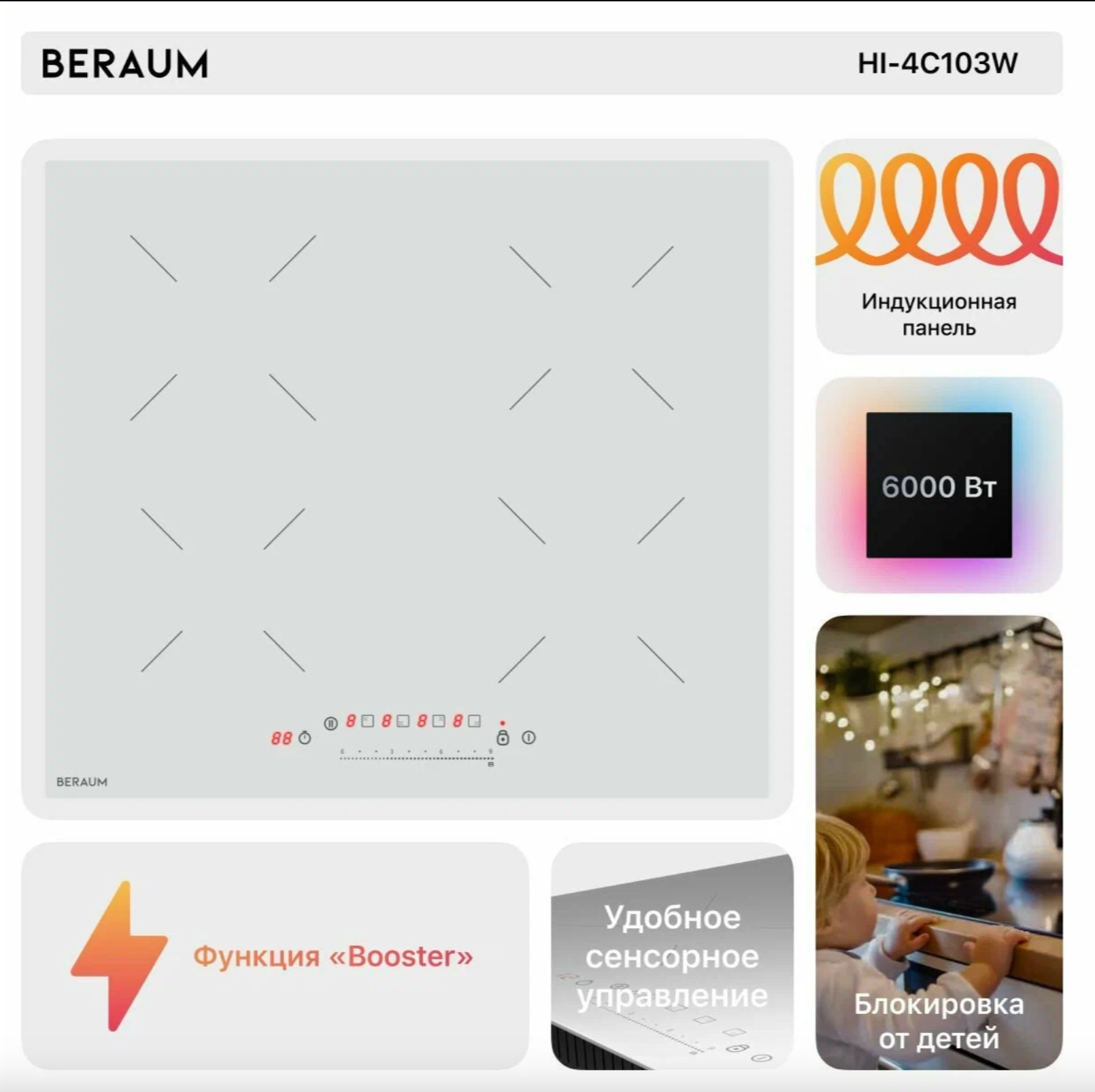 Индукционная варочная панель Beraum HI-4C103W, белый интересное: