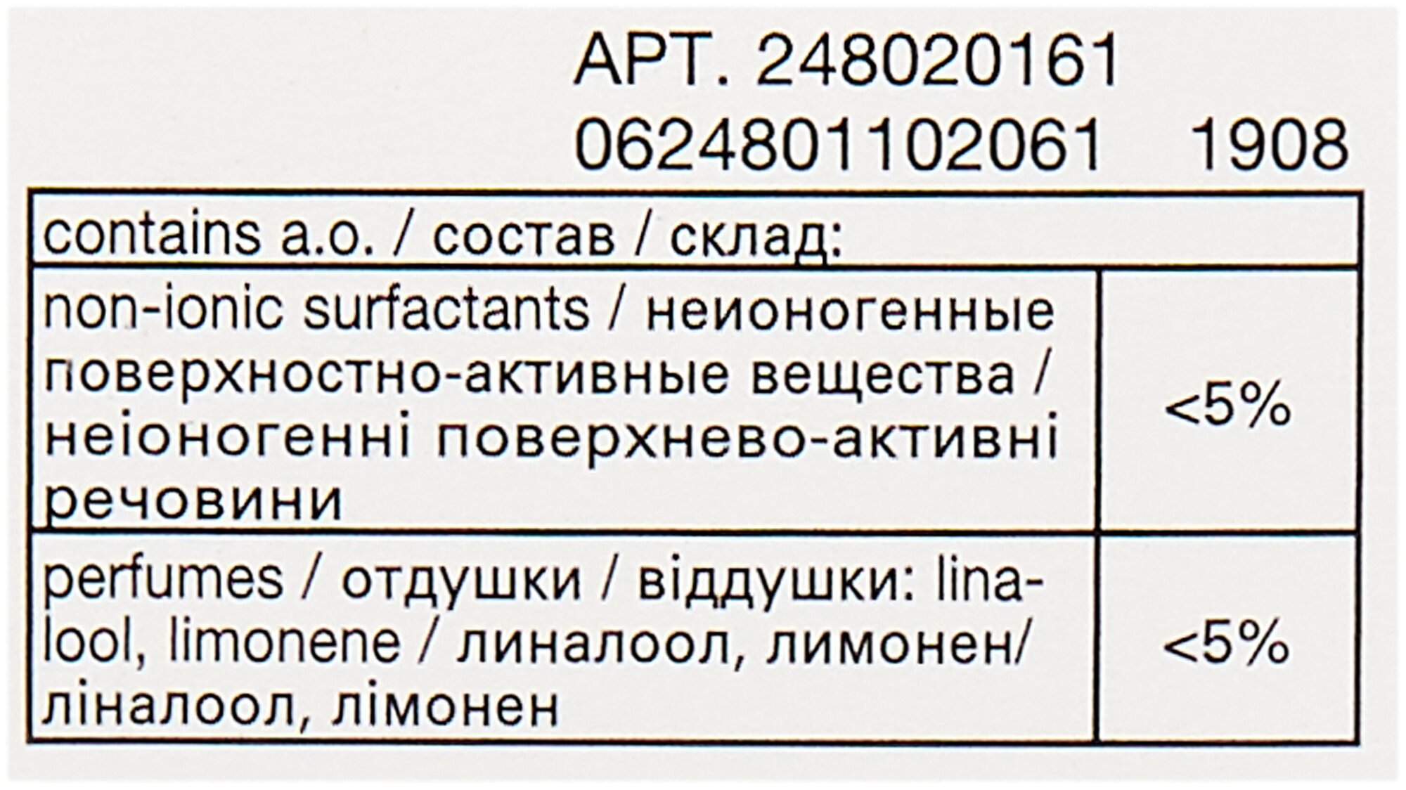 | Отзыв: | В составе едкий натр. Может быть опасно для алюминиевой крестовины стиральной машины.