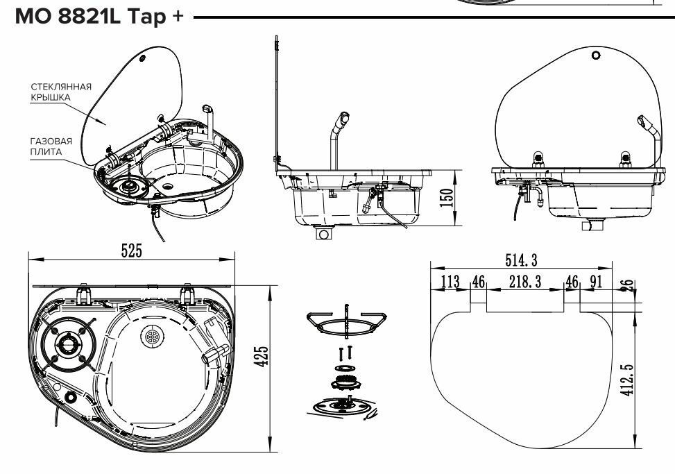 Варочная панель с мойкой и смесителем Libhof MO 8821R Tap + для автодомов и яхт интересное: