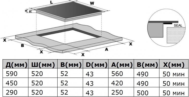 | Глубина для встраивания | 50 см |