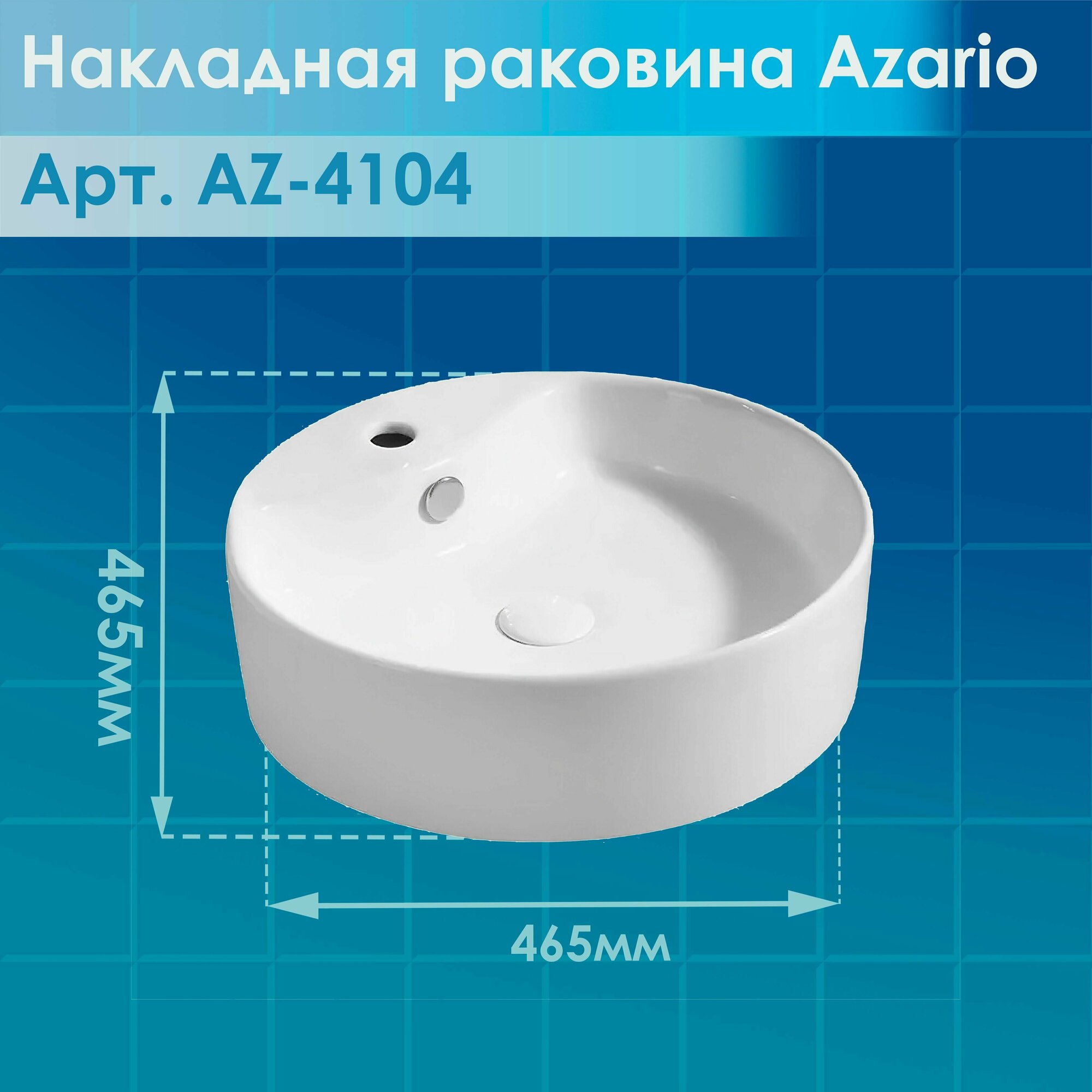 Раковина накладная Azario круглая, 140х465х465 мм, цвет белый AZ4104